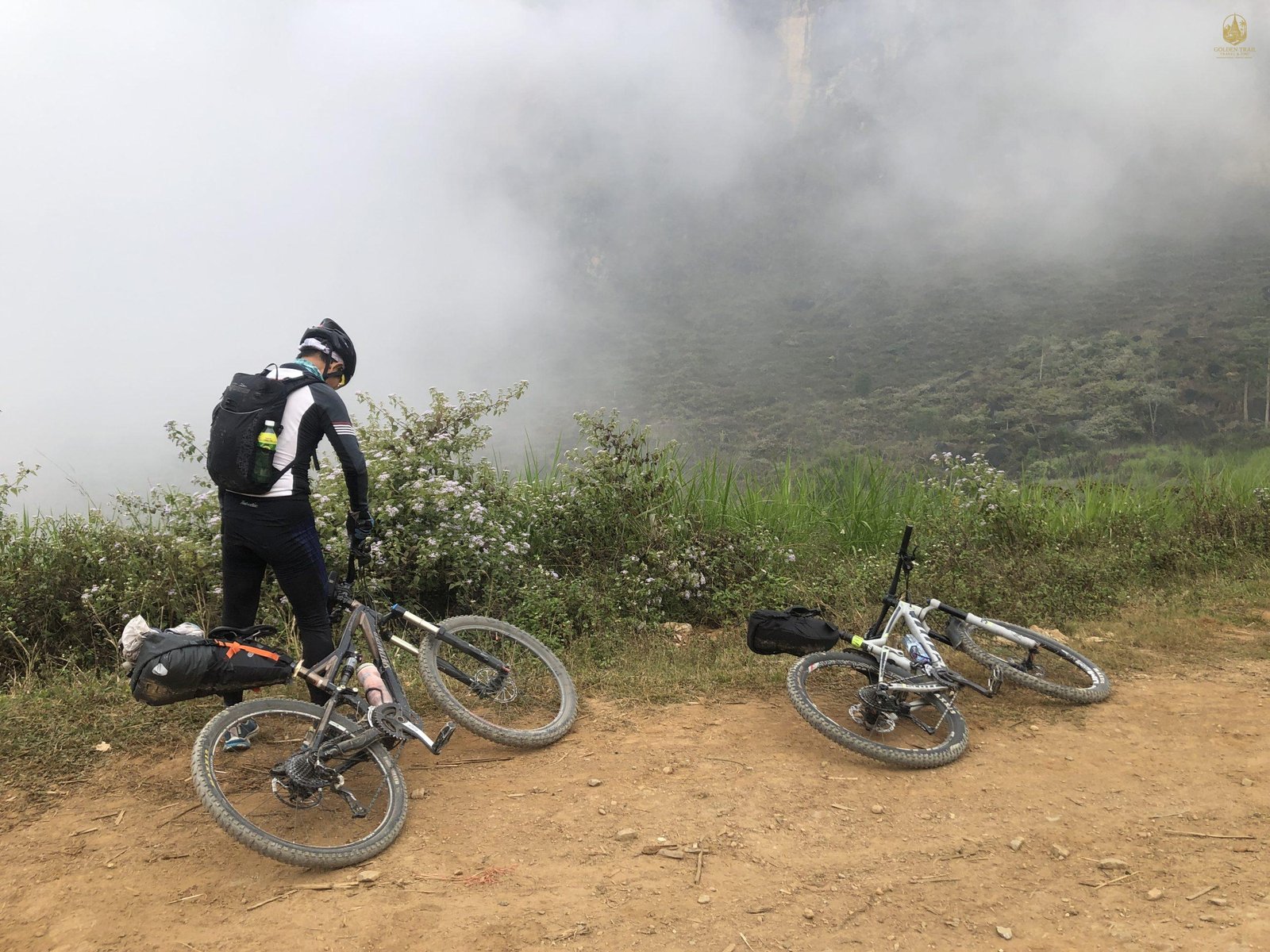 In the afternoon, our mountain biking adventure continues along a ridgeline trail offering jaw-dropping panoramic views of mist-filled valleys and cloud-kissed peaks—this is Vietnam highland cycling at its finest. We soon reach the serene Ho Thau Village, a charming settlement perched above the clouds, known for its mesmerizing vistas. The final stretch rewards your effort with a well-earned descent into a peaceful resting area.