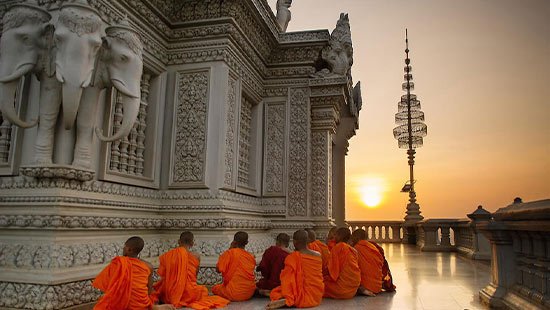In the afternoon, ascend the steps to the summit of Oudong Mountain, where breathtaking vistas of the surrounding plains await. Your guide will provide insights into the region's history, architectural marvels, and the religious customs of the Cambodian people.