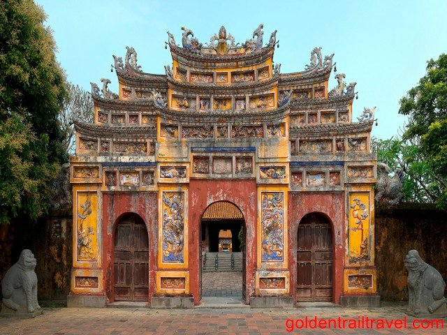 Next, you are able to explore the Imperial City of Hue. With an area of 500ha and a system of three circles of ramparts, namely from outside to inside: Kinh Thanh Hue (Hue Capital Citadel), Hoang Thanh (Royal Citadel) and Tu Cam Thanh (Forbidden Citadel) and Khai Dinh Tomb, Hue Citadel is the result of the intermingling of many architectural trends: European and Asian, as well as ancient and modern.