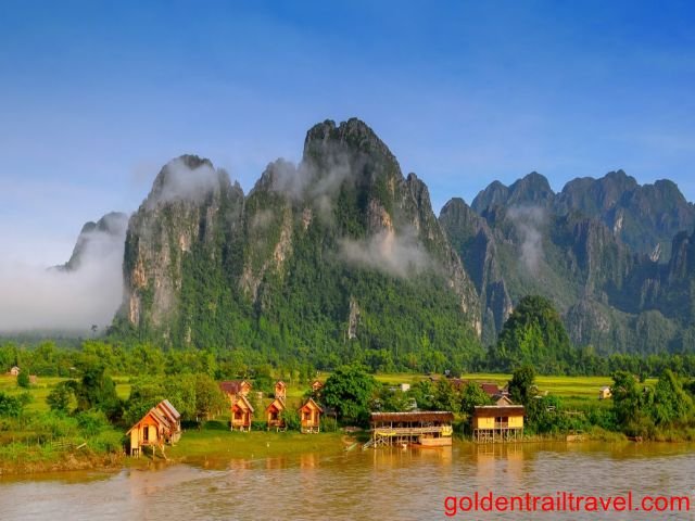 After breakfast, we will drive to Vang Vieng. We will see some breathtaking scenery en route as we pass through spectacular countryside towards the mountainous region. We make a stop along the way at Vang Xang, a famous archeological site dating back to the 11th century.