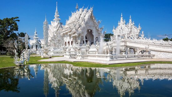 3. Wat Rong Khun (White Temple): it's all white and has shiny pieces of glass that glimmer in the sunlight.
