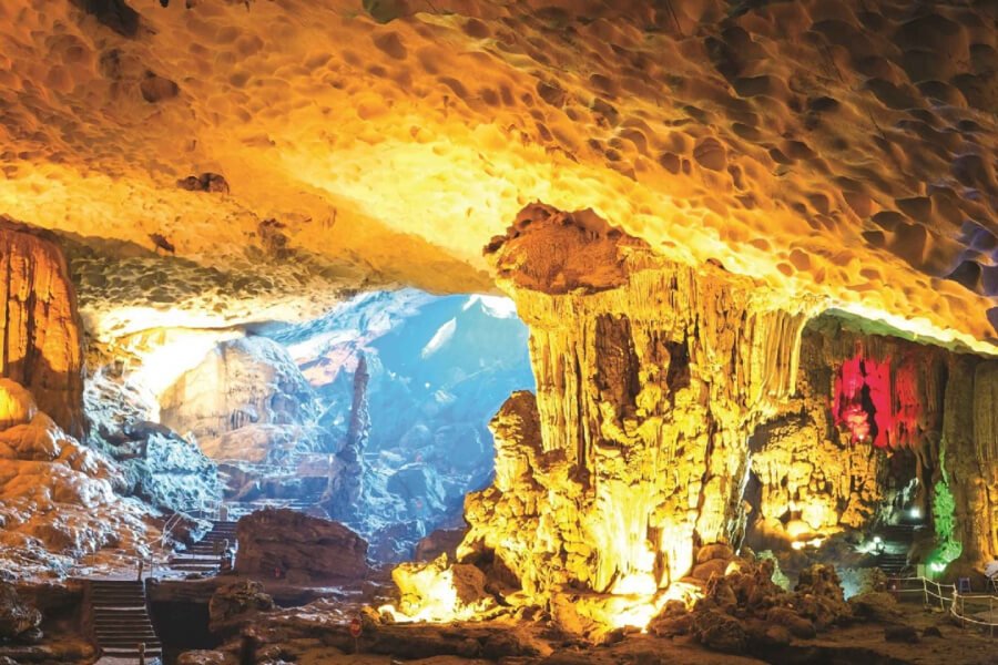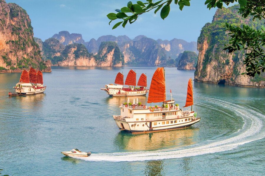 Halong Bay: Embark on an unforgettable overnight cruise aboard a traditional junk boat. Marvel at the thousands of limestone karsts rising majestically from the emerald waters. Explore stunning caves like Sung Sot Cave and enjoy activities such as kayaking or simply relaxing on deck.