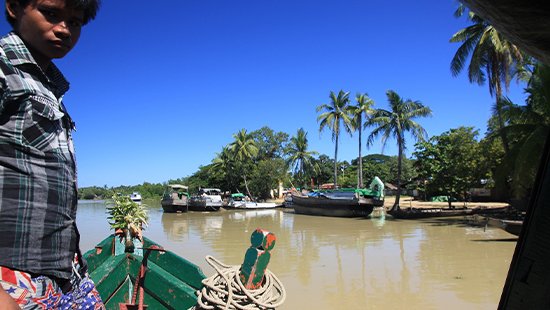 Then, you'll go on a boat ride for 2-3 hours along the Lay Mro River to visit villages where the Chin people live.