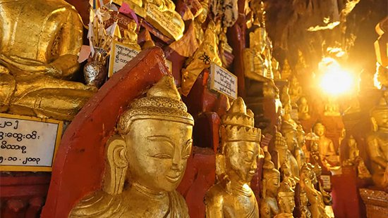 Walking through a covered alley lined on both sides with a thousand pagodas and a long-covered staircase, you’ll have a chance to discover the magnificent complex of Alaung Sithu in beautiful scenery of ancient stupas, which are buried in vegetation with a panoramic view of the Inle Lake.