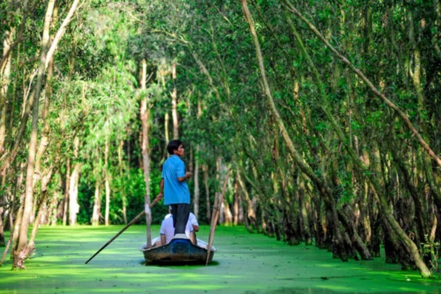 This morning, transfer to remote My Tho. This burgeoning capital rests in the Mekong Delta and is surrounded by beautiful countryside known as the "rice basket of Vietnam". First visit Vinh Trang Pagoda, decorated with mosaics made from broken pottery. Overlooked by a tall white Buddha, it is set amongst lovely gardens overflowing with flowers, shrubs, lotus pools and tombs and ornate gates which provide entry. Continue on a boat ride along the river to view the stilt houses, fruit plantations and fishing villages.
