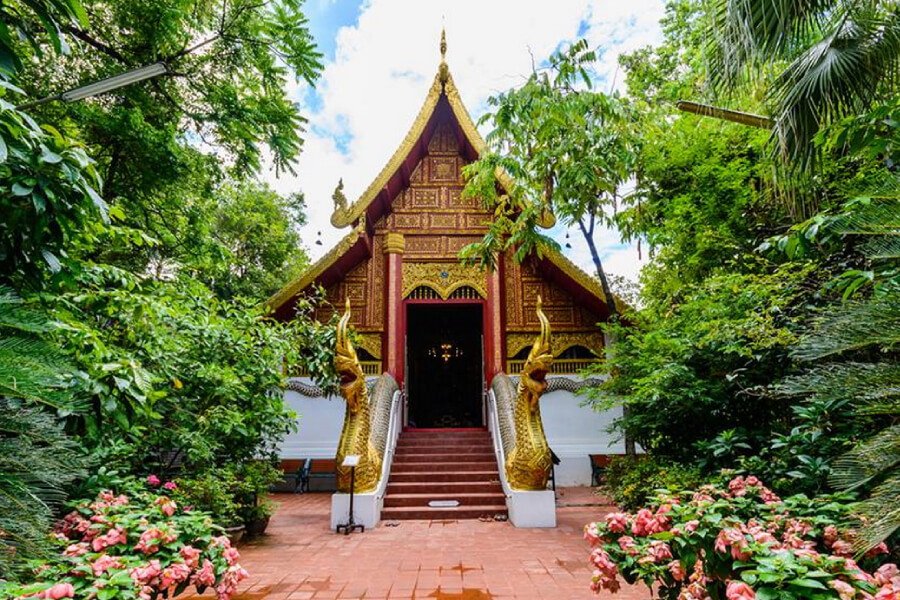 In the morning, start your cultural tour of Chiang Mai. First stop at Kad Ton Payom Market, renowned for its fresh fruits and flowers, aromatic spices and northern Thai cuisine. You can participate in the local tradition of almsgiving — offering food to Buddhist monks. Continue to the Buddhist temple of Wat Umong, nestled in the forested foothills of Suthep Mountain. Learn about the Buddhist proverbs posted throughout the grounds in English and Thai before you head inside to see the impressive Buddha statue. You’ll also visit the 14th-century Wat Suan Dok, a white bell-shaped temple housing a 20-foot (6-meter) Buddha. See the large prayer hall and the unique open-sided chapel, then enjoy an opportunity to chat with a monk about Buddhism and temple life.
