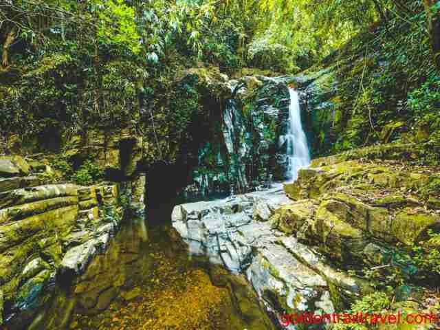 Further along your trek, you'll discover the majestic Do Quyen Waterfall (Rhododendron Waterfall). Standing at an impressive height of over 300 meters, this multi-tiered cascade is a breathtaking sight, especially during the blooming season. You'll have the opportunity to descend a path to the base of the waterfall, allowing for a truly awe-inspiring perspective and incredible photo opportunities. Your expert Bach Ma guide will share captivating stories about the park's history, its unique flora and fauna, and the conservation efforts protecting this invaluable ecosystem.