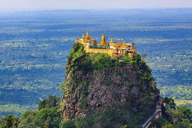 Highlight the 4th day with an amazing trip to Mt Popa – an impressive extinct volcano that is said to be the birthplace of Myanmar Nats (Spirits). Hike up to 777 steps to reach the pagoda on the top and gain a panoramic view of the area. Afterward, return to Bagan and stop for a short visit to the palm tree plantation and a local tranquil village to learn more about Myanmar culture.