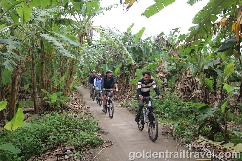 Cycle Through Authentic Rural Landscapes: Pedal along quiet, flat paths winding through lush farmlands, vegetable patches, and fruit gardens, experiencing the tranquility of the Vietnamese countryside.