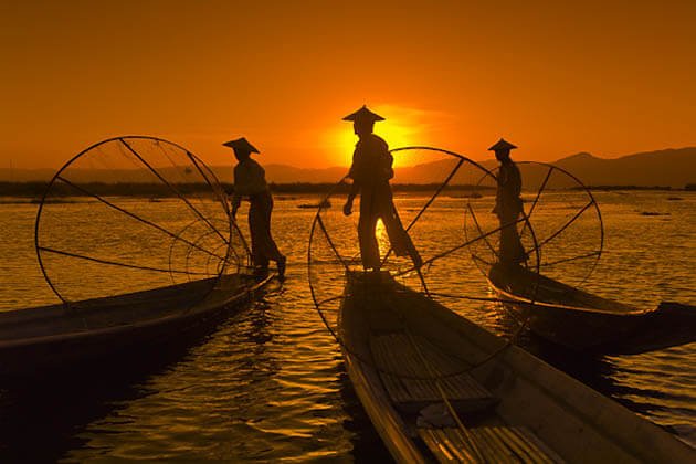 Intha Leg-Rowers: Witness the iconic and unique one-legged rowing technique of the local Intha fishermen up close.