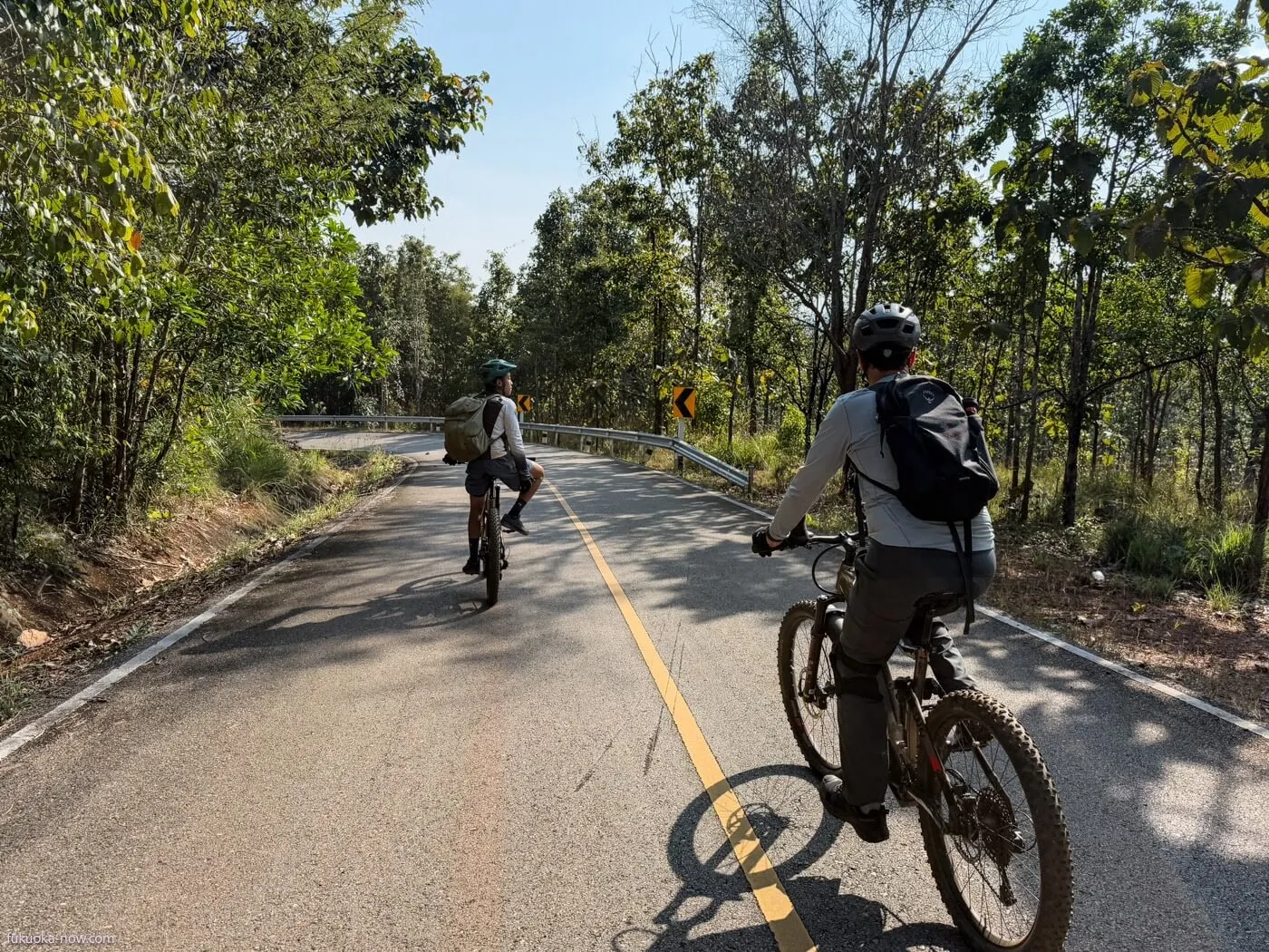 This morning we ride mostly off-road through great trails and scenic landscape! The route is not too difficult and the escort vehicle is always nearby. The morning distance is nearly 20 miles (30 km). Lunch stop and visit the Buddhist forest temple and caves. Afternoon cycling around 15 miles (25 km), paved road, then car transfer to Ban Thaton for overnight.
