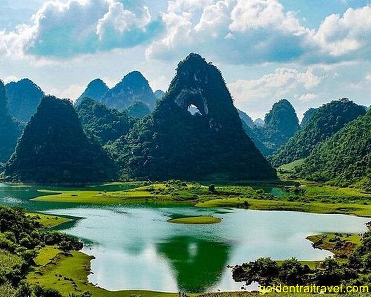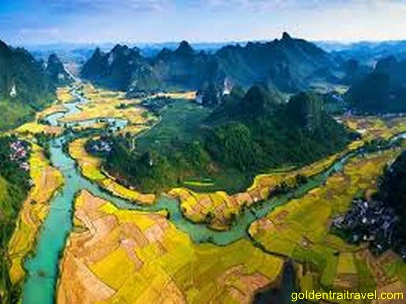 Spectacular Karst Landscapes: Cycle directly through and amidst the dramatic limestone karsts of Cao Bang, with towering peaks, lush valleys, and winding rivers creating breathtaking scenery.