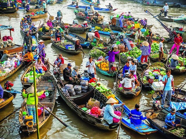 Long Xuyen Floating Market Experience: Take an early morning boat trip to Long Xuyen Floating Market, one of the Mekong Delta's largest and most authentic floating markets, for a vibrant cultural spectacle.