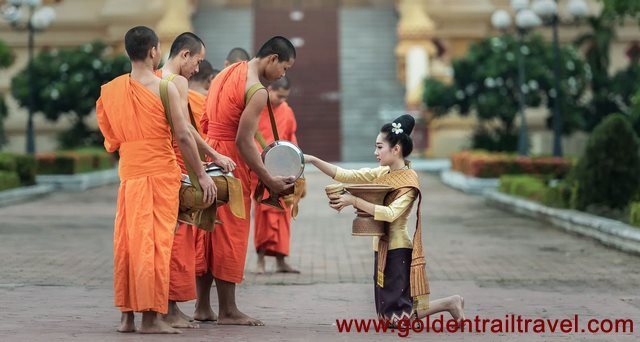 Tak Bat (Alms Giving Ceremony): Witness the serene and deeply spiritual daily ritual of saffron-robed monks collecting alms at dawn.