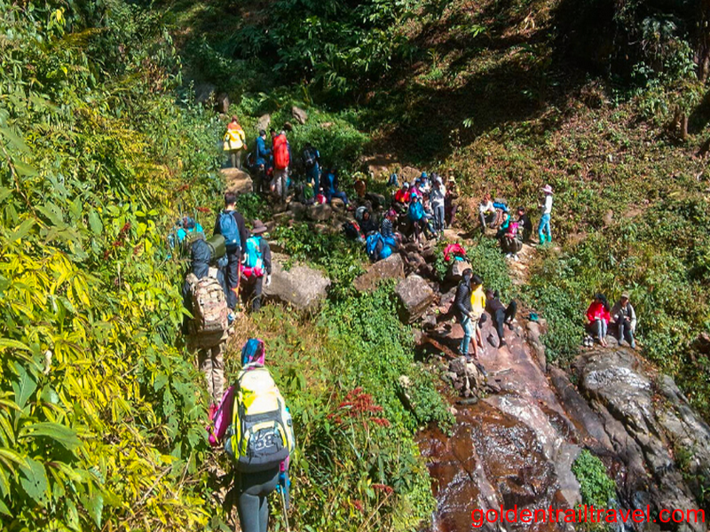 Upon your arrival in Tam Duong town, Lai Chau province, around 4:30 AM, you’ll have a chance to rest and have breakfast at a local homestay during the day. After breakfast, our motorbike will pick you up from the homestay and take you to the starting point at Ho Thau commune. Make sure to double-check all of your hiking gear, such as gloves, raincoats, and hiking poles, to ensure you’re fully prepared for the trek.
