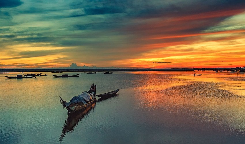 Focus on Reflection and Silhouettes: The calm waters of Tam Giang Lagoon are perfect for capturing stunning reflections of the sky, boats, and karsts. The low light of dawn and dusk provides ideal conditions for dramatic silhouette photography of fishermen and their boats.