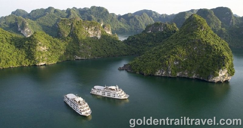Following breakfast, enjoy a short drive to Hai Phong where you will board the overnight cruise on an enchanting journey throughout the beautiful Ha Long Bay. On arrival, the welcome drinks, cruise briefing and safety instructions are delivered by the cruise manger followed by your cabin check in. The uniquely designed itineraries allow you to experience the less traveled routes that other cruises simply don’t reach. Apart from exploring the natural beauty of many islets in a leisure pace, the today program also includes more activities such as exploring Trung Trang cave in the middle of Cat Ba National Park, swimming on the green emerald and cool water, taking hands-on cooking class onboard to challenge your skills in preparing a very famous Vietnamese dish. All fresh seafood meals are on-house as well.