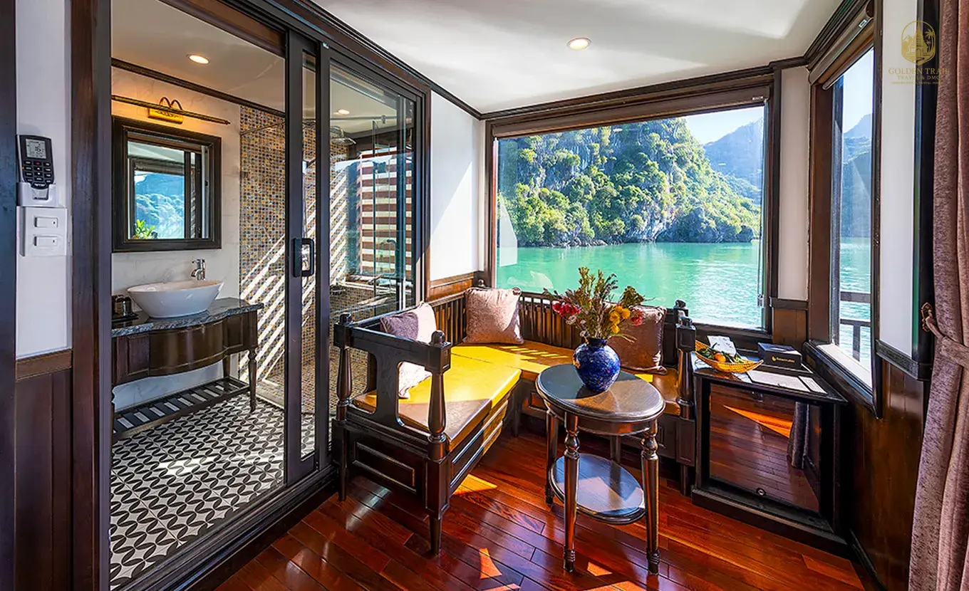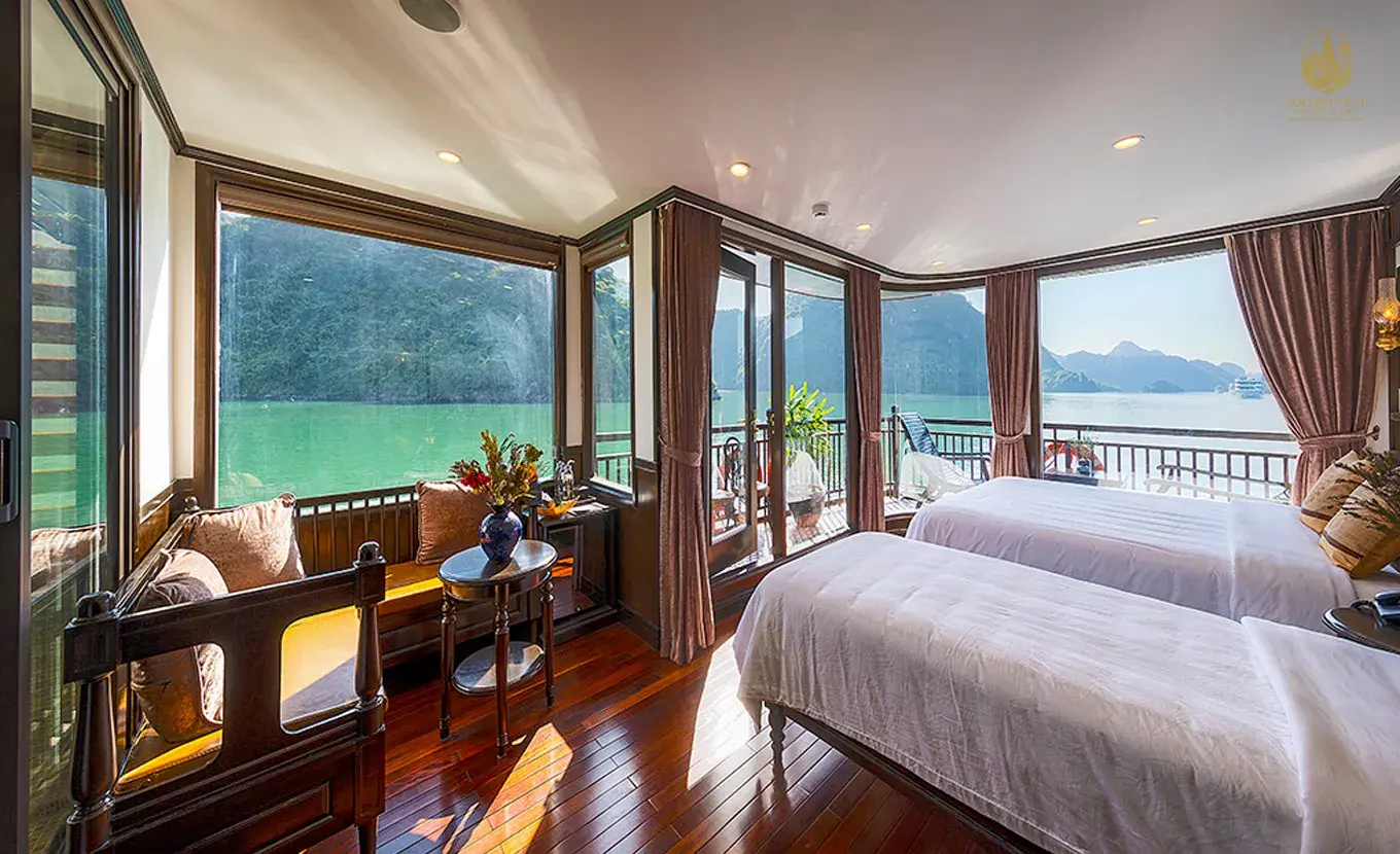 The experience swiftly ascends to a feeling of sự hùng vĩ tuyệt đối và thanh tĩnh (absolute grandeur and serenity) aboard a luxury cruise in Lan Hạ Bay (the quieter, less traveled extension of Hạ Long Bay). Sailing among the towering limestone karsts is an unforgettable moment of connection with a UNESCO World Natural Heritage Site. The luxury cruise ensures that this majestic environment is enjoyed with comfort and refined indulgence, allowing you to focus purely on the stunning scenery.