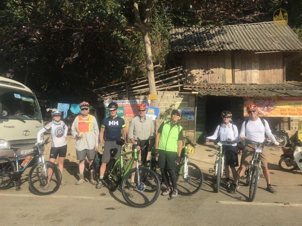 The route is challenging, featuring several rewarding ascents that test your grit. However, with every climb, the scenery progressively gets more beautiful: dramatic limestone cliffs frame the horizon and lush vegetation blankets the hillsides. Our support vehicle is always close by, offering a welcome rest whenever needed. We arrive late afternoon in Ngoc Lac, a small, authentic village where comfortable accommodation is scarce—but we secure a spot at one of the best places in town for our overnight stay.