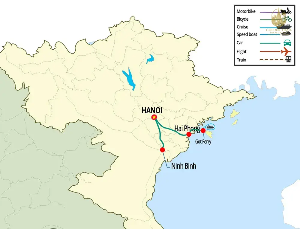 Route: Lan Ha Bay - Tuan Chau - Hanoi (140km, ~2.5 hours)