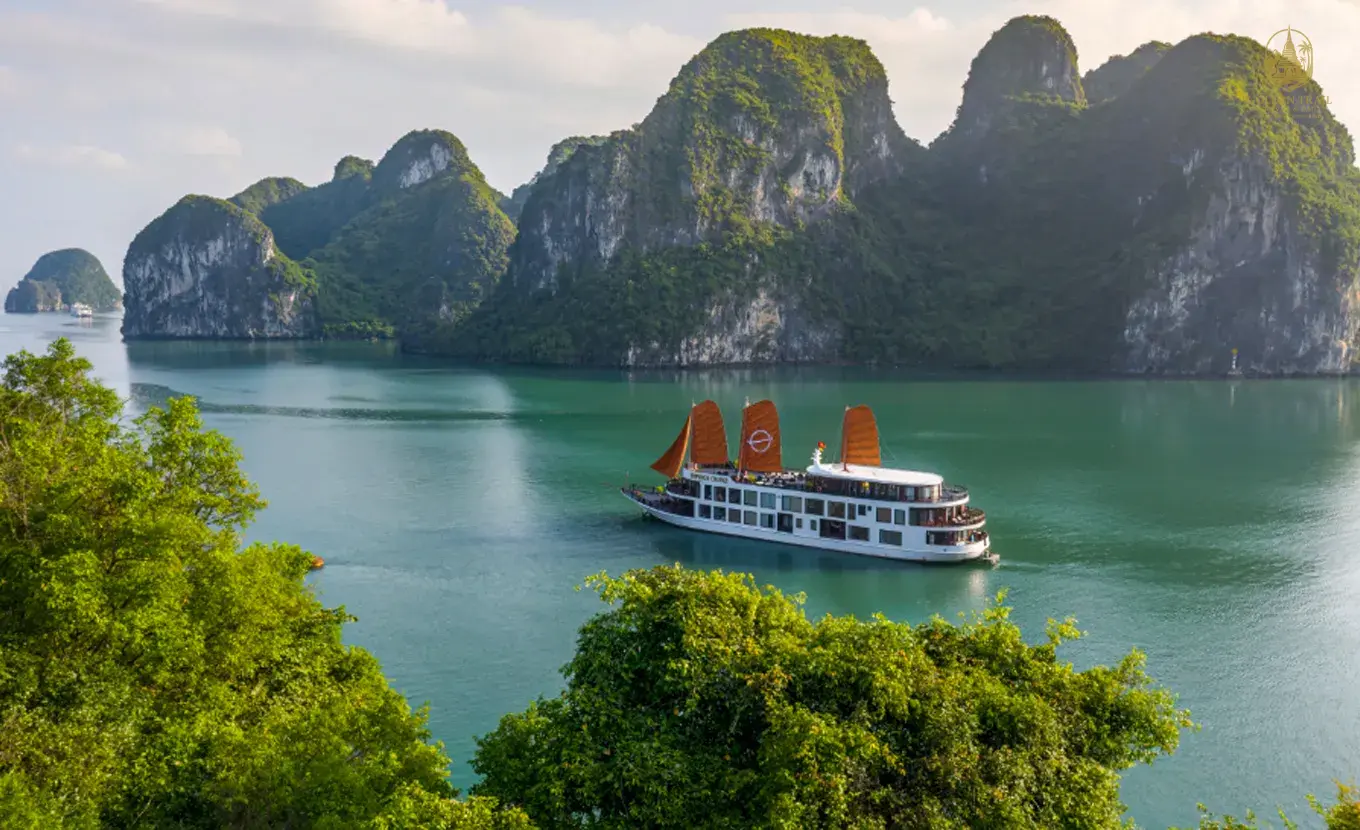 Gourmet Sailing: Enjoy a sumptuous set-menu lunch as the cruise glides into the emerald maze of Bai Tu Long Bay.
