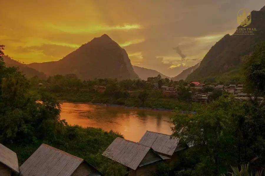 Evening: Stay in a riverside bungalow. Grab a cold Beer Lao, sit on your balcony, and watch the sunset paint the limestone cliffs in hues of orange and purple.