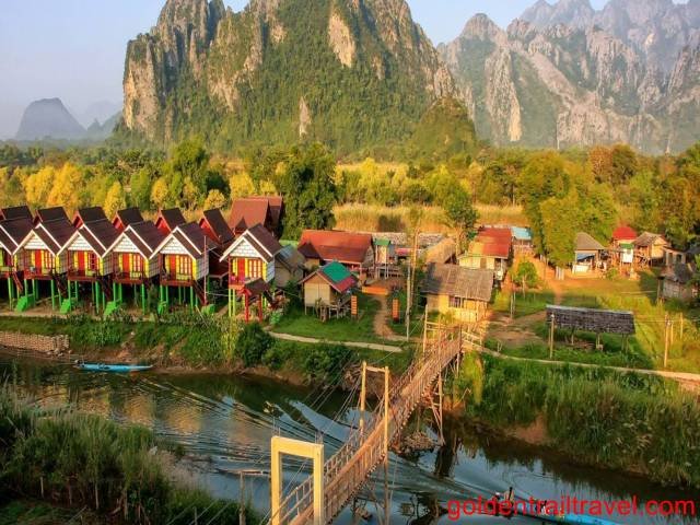 After breakfast, we will drive to Vang Vieng. We will see some breathtaking scenery en route as we pass through spectacular countryside towards the mountainous region. We make a stop along the way at Vang Xang, a famous archeological site dating back to the 11th century.