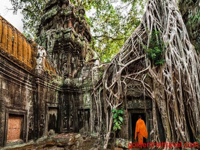 In the morning, tour the ancient capital city of Angkor Thom. First on the agenda is Ta Prohm. Huge silk-cotton trees and strangler figs grow over, around, and through the ancient stone blocks. The temple would make you feel as if you are in an adventure movie set.