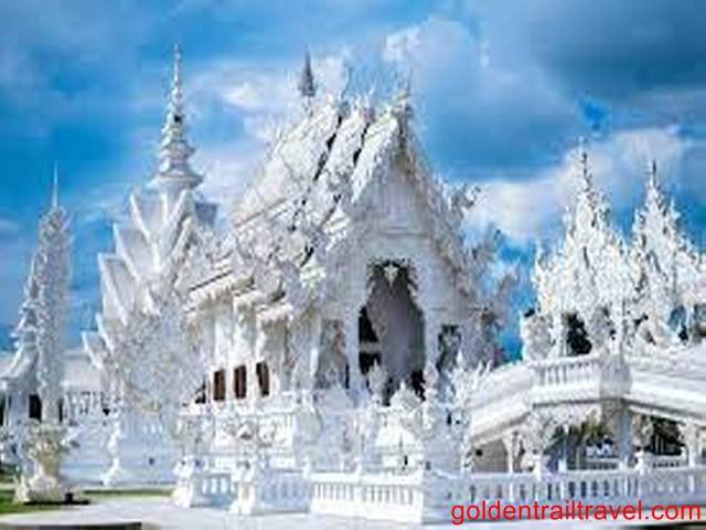 3. Wat Rong Khun (White Temple): it's all white and has shiny pieces of glass that glimmer in the sunlight.