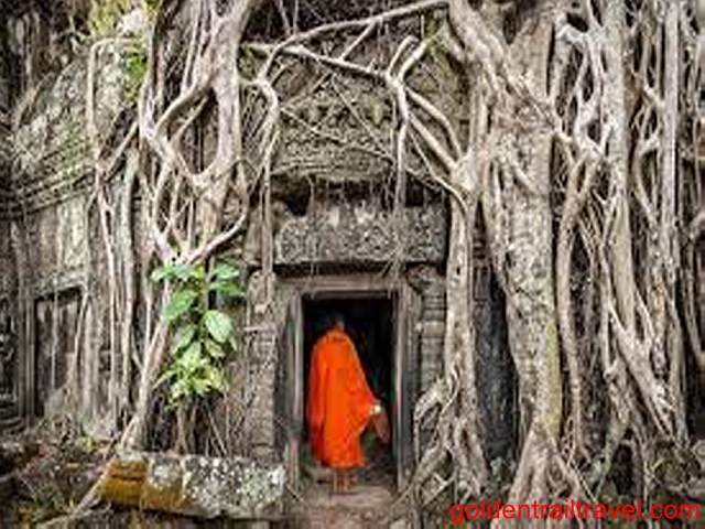 Be captivated by Ta Prohm, famously known as the "Tomb Raider temple," where giant tree roots dramatically embrace and intertwine with ancient stone structures, showcasing nature's powerful reclamation.