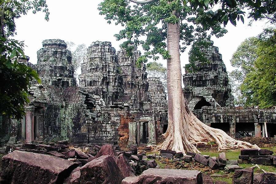 After breakfast, begin your explorations of the remains of an ancient civilization that once ruled much of Southeast Asia. Today, visit the ancient capital city of Angkor Thom. On your way, you’ll catch a glimpse of Angkor Wat as you pass by. However, we’ll save the best for last as you continue today to see some other equally impressive ruins of Ta Prohm Temple, Bayon Temple, Banteay Kdei, Baphoun, Elephant Terrace, Leper King Terrace, and the Royal Palace. First on the agenda is Ta Prohm. Worn by time, rain, and overpowered by the jungle, this immaculate structure hidden under a canopy will leave you feeling as if you’d stepped into an adventure movie set.