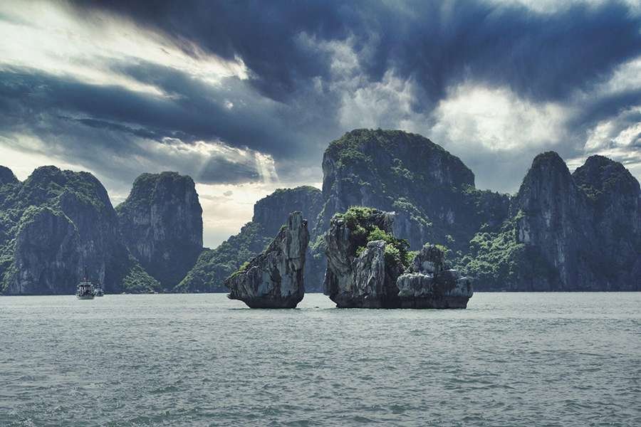 Halong Bay Cruise: Embark on an unforgettable overnight cruise through thousands of dramatic limestone karsts, exploring caves, kayaking, and enjoying breathtaking sunsets over emerald waters.