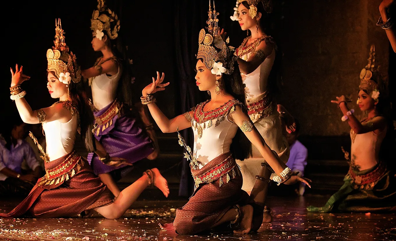 In the evening, enjoy a welcome dinner with Cambodian folk cultural Apsara Dancing Show.