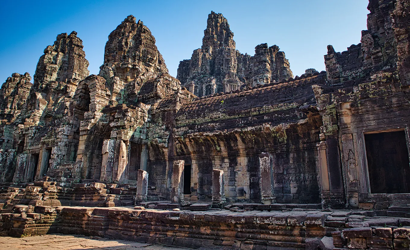 Angkor Thom & Bayon Temple: Explore the ancient walled city and marvel at the iconic four-faced towers of the Bayon Temple.