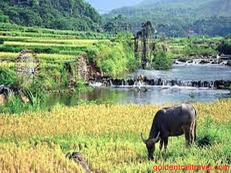 We will leave Hanoi for Hoa Binh province and up then to Mai Chau valley. This scenic drive takes around four hours. Along the way we pass fields of tapioca and sugar cane as well as rice paddies. Upon arriving in Mai Chau valley, we take a short walk around Lac & Poom Coong villages to have the first experience of the White Thai community local life and their culture. Lunch will be served at local home. We will then leave Mai Chau for a short ride along the Ma river (22km) to Sai village. Off the bus, we begin our trek to Duom and Hang villages. We will trek through outstanding mountain scenery and picturesque rice paddies, see hand-crafted bamboo water wheels, and talk with the lovely local people. Spend the night in a local Thai family’s traditional home on stilts.