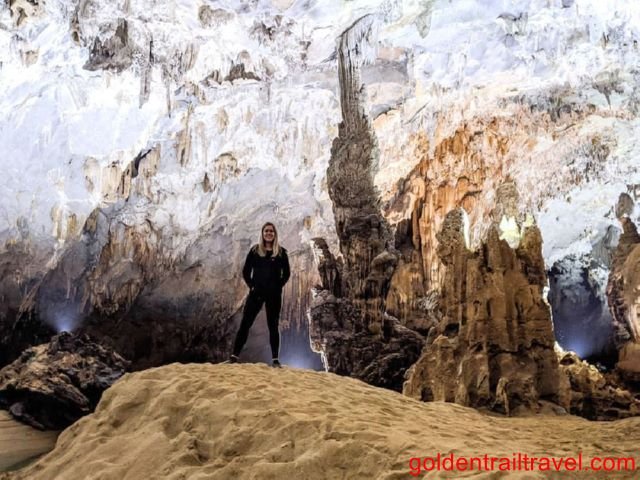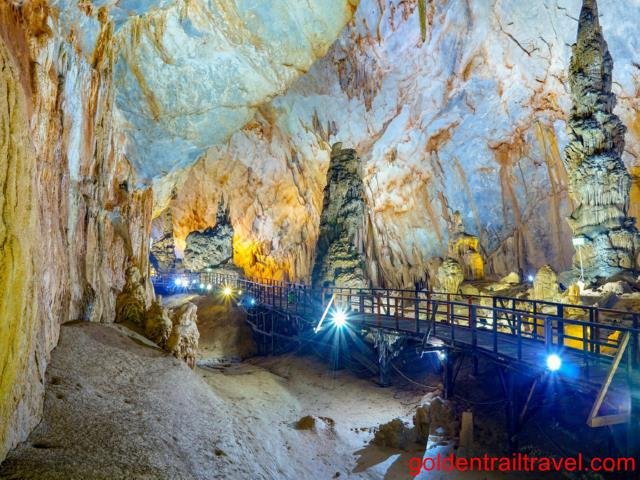 Following your exploration of Phong Nha Cave, a short, invigorating climb will lead you to the drier, equally mesmerizing Tien Son Cave. Often referred to as "Fairy Cave," Tien Son boasts a different kind of beauty, with its pristine formations, sparkling calcite structures, and an ethereal atmosphere. Walking through its ancient passages, you'll feel a sense of discovery as you admire formations that resemble everything from mythological creatures to ancient ruins. This part of the Phong Nha discovery tour provides a contrasting yet equally impressive experience to the watery depths of Phong Nha Cave.