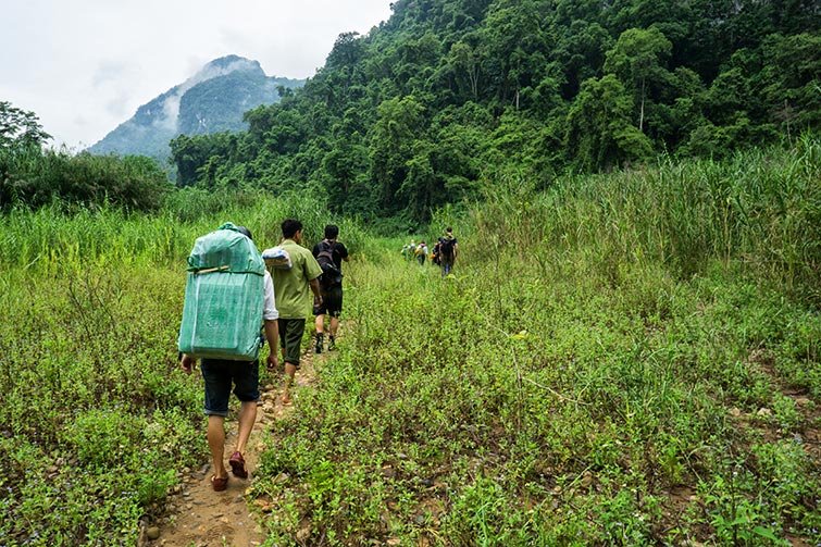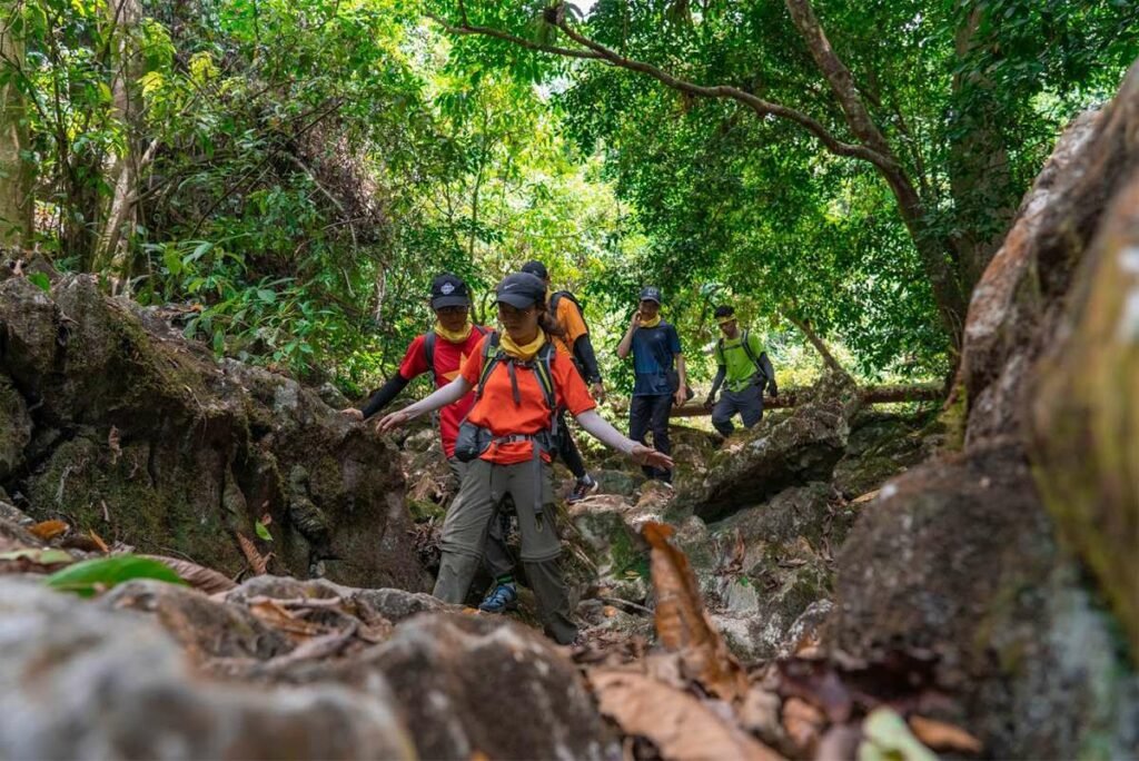 Trekking adventure through the stunning Phong Nha-Ke Bang National Park, a UNESCO World Heritage Site known for its incredible caves and underground rivers.