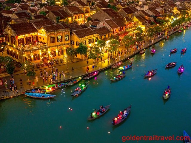 Later, take a boat trip along the Huai River to Thanh Ha Pottery Village and see how local people work on their crafts. In the evening, the town became so romantic when the lights come on and you see colorful lanterns everywhere especially the flower lanterns floating on the river.