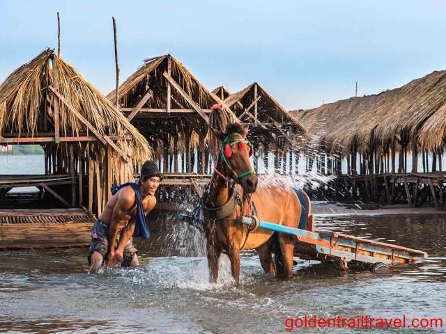 Then, go to visit the Pak Ou Cave which locates by the Mekong River. Here, you will discover a number of gold lacquered Buddha statues in the cave.
