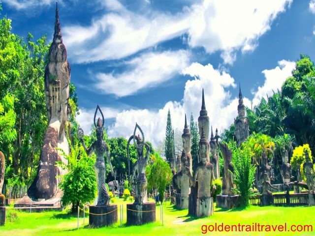 Then, go to visit the Pak Ou Cave which locates by the Mekong River. Here, you will discover a number of gold lacquered Buddha statues in the cave.