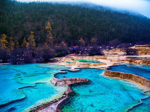 [12:00-16:00] Lunch will be served at local restaurant nearby Chuanzhusi Temple. After lunch, visit Huanglong National Park, which is a World Natural Heritage site, and famous for its colorful ponds, snowy mountains, deep valleys, and dense forest. All the colors of the rainbow are here. The landscape studded with waterfalls and terraced, colored limestone ponds of blue, yellow, white and green. We suggest you hike on the mountain to explore the real beauty of Huanglong National Park. There is also cable car service available, and you can take it to the top at your expense for relaxing trip.