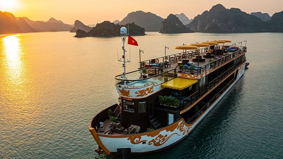 Welcome onboard in Halong Bay! You will be greeted with a welcome drink and the introduction and guidelines. Then, you will enjoy the lunch onboard in the elegant dining room.