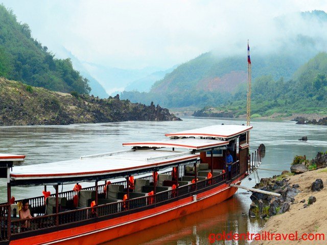 Then, go to visit the Pak Ou Cave which locates by the Mekong River. Here, you will discover a number of gold lacquered Buddha statues in the cave.