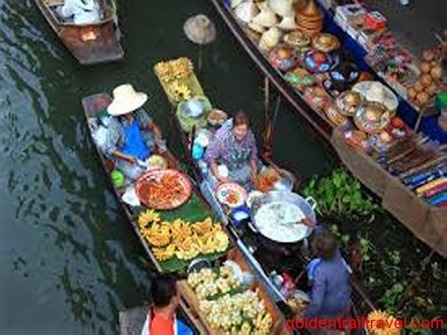 In the morning, visit Damnoen Saduak Floating Market, where you can experience the traditional Thai market with numerous vendors selling local food, fresh fruit and products from their boats.