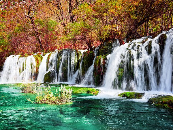 Jiuzhaigou Valley Spectaculars: Hike through crystal-clear turquoise lakes, multicolored pools, and cascading waterfalls.
