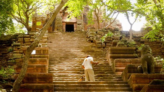 In the afternoon, ascend the steps to the summit of Oudong Mountain, where breathtaking vistas of the surrounding plains await. Your guide will provide insights into the region's history, architectural marvels, and the religious customs of the Cambodian people.