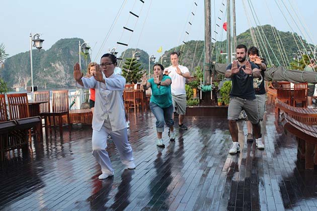 Wake up in the morning for a Tai Chi exercises on the sun deck and continue cruising the bays. Breakfast buffet will be served in the restaurant, then you will visit the limestone grotto. Disembark in Halong City at noontime and transfer back to Hanoi with your private vehicle, guide and driver.