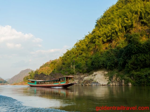 Then, go to visit the Pak Ou Cave which locates by the Mekong River. Here, you will discover a number of gold lacquered Buddha statues in the cave.