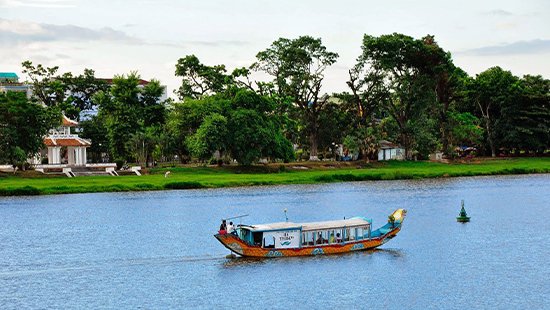 3. Perfume River: take a dragon boat cruise to enjoy the open view of the river and the peaceful landscape along the river banks.