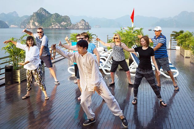 Wake up to Tai Chi exercises on the sun deck and continue cruising the bays. Breakfast buffet will be served in the restaurant, followed by a visit the limestone grotto. Disembark in Halong City around noon and transfer back to Hanoi airport for your onward flight to Danang, upon arrive , you will escort to Hoi An for hotel check in.